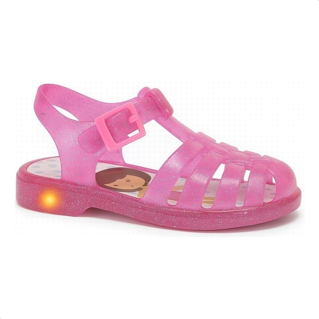 Ideal para o uso diário, seja na escola, creche ou passeios com a família, ela oferece calce prático e ótimo ajuste, além de um design pensado especialmente para meninas que amam brilho, cor e conforto.